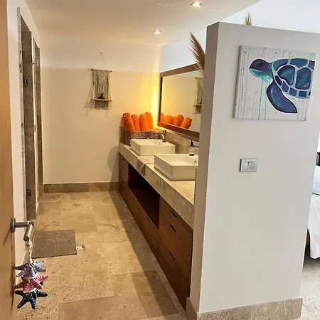 公寓坐落在Costa Mujeres区,还靠近Puerto Amada. 它距离El Meco 遗址3.3公里.女人岛, 金塔纳*罗奥机场距离这套海滨的公寓10公里. Parroquia Inmaculada Concepcion距离住所仅几步之遥.